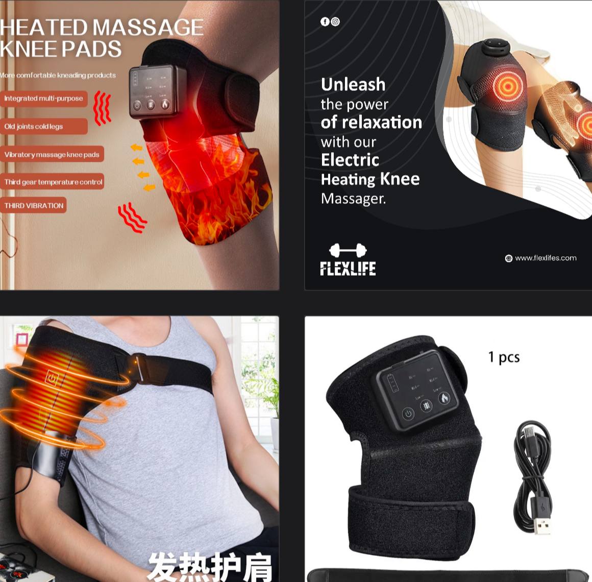 HEATED RECHARGEABLE MASSAGE KNEE/SHOULDER/ELBOW PAD